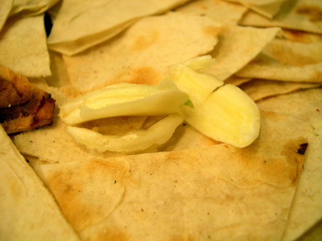 Լավաշի կտորները ջեռոցում պարբերաբար խառնեք, որպեսզի հավասարաչափ չորանան և կարմրեն: Հանեք ջեռոցից, երբ դրանք արդեն բավականին չոր կլինեն: Վայելեք Ձեր խրթխրթան չիփսերը: