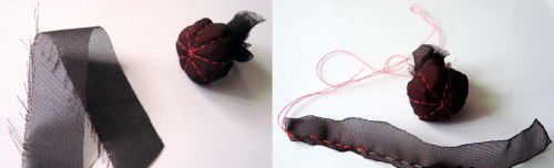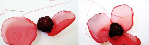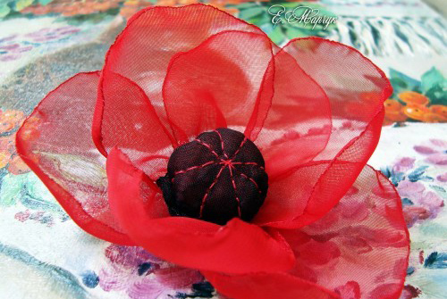 Ծաղկի կենտրոնում պետք է սերմնապարկը լինի, որ տեսքը բնական լինի: Դրա համար մուգ գույնի շիֆոնից կտրում ենք ուղղանկյուն: