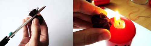 Թերթիկների ծայրերը կրակով մի փոքր այրում ենք, որ հավասարվեն և հետագայում էլ թելերը դուրս չգան:
