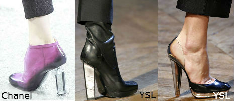 Նման լուծումը առավել հիասքանչ է տանկետկայի դեպքում: 2012 թվականի նորաձև ամռան համար միայն մասամբ թափանցիկ կոշիկների հիանալի լուծումներ են արդեն իսկ առաջարկել Versace-ն, Chanel-ը, YSL-ը, Dior-ը: