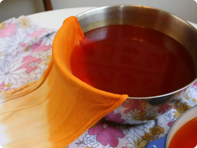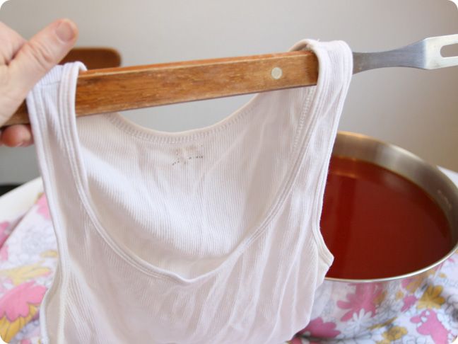 Վերնաշապիկն անցկացրեք որևէ երկար ու ոչ պետքական փայտի վրա և դրա կեսը մտցրեք լուծույթի մեջ: Թողեք որոշ ժամանակ, ապա հանեք: