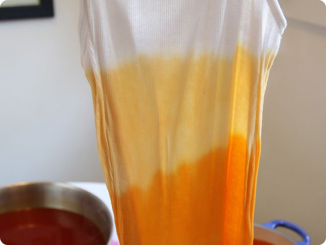Ուշադիր եղեք, որ գրադիենտը սահուն ստացվի, գույները հավասարաչափ անցնեն բացից մուգի: Եթե նկատեք, որ կտրուկ անցում է ստացվել, վերնաշապիկը մտցրեք լուծույթի մեջ այդ գծից փոքր-ինչ վերև և թողեք, որ գույները խառնվեն: