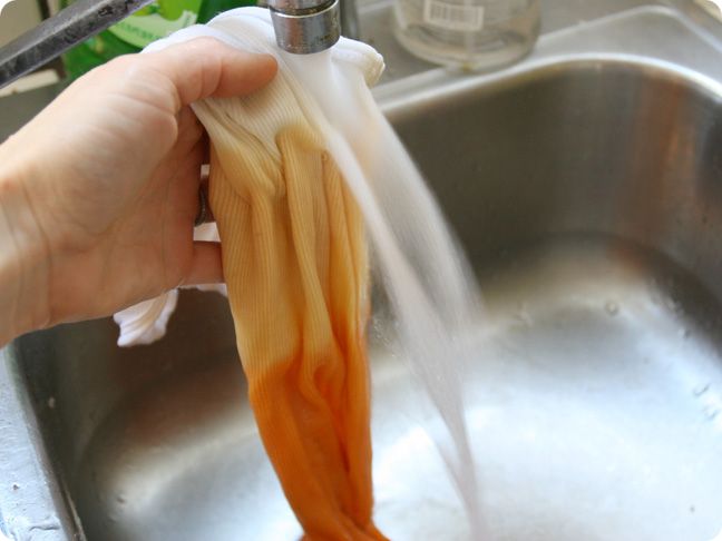 Երբ ստանաք անհրաժեշտ գրադիենտը, լվացեք վերնաշապիկը սառը ջրում' ավելացնելով մի քիչ քացախ: Լվացեք մինչև ջրի թափանցիկ դառնալը: