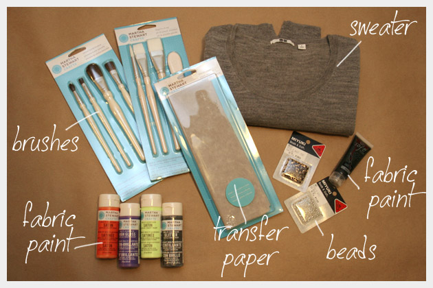 Նկար ստանալու համար վերցրեք մեկ բլուզ, կալկա, կտորեղենի վրա նկարելու համար նախատեսված ներկեր ու վրձիններ, երկար ու գույնզգույն հուլունքներ, սև մարկեր և կտորեղենի համար նախատեսված սոսինձ: