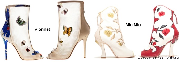 Նորաձև են նաև ծաղկավոր, բարձր կրունկով երկարաճիտ կոշիկները,որոնք գարնանային տրամադրություն կհաղորդեն, թե կրողին, թե անգամ պատահական անցորդին: ) Այսպիսի կոշիկները գերիշխող էին սեզոնային ցուցադրությունների ժամանակ: