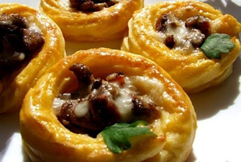 Լավաշի շերտերի վրա դնում ենք շերտերի բաժանած պանիրը, ապա' հորթի խաշած, մանրացրած միսը, կտրատած կանաչի, ցանում ենք սխտորի փոշին, ըստ ճաշակի՝ աղ եւ պղպեղ...