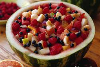 Մրգային աղցան ձմերուկի մեջ. ամառային վայելք