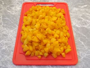 Մինչ խմորը կհասունանա, լվացեք ծիրանները և ա կտրատեք խորանարդիկների: