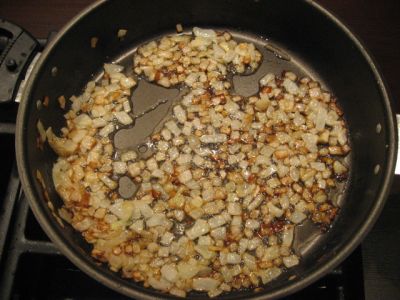 Սոխը մանր կտրատում ենք եւ տապակում մինչեւ լավ կարմրելը: