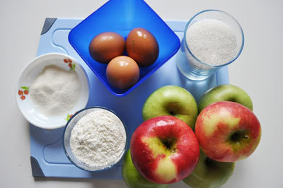 խնձոր' 4հատ, ձու' 3հատ, շաքարավազ' 1բաժակ, ալյուր' 1 բաժակ, մի փոքր մաննի: