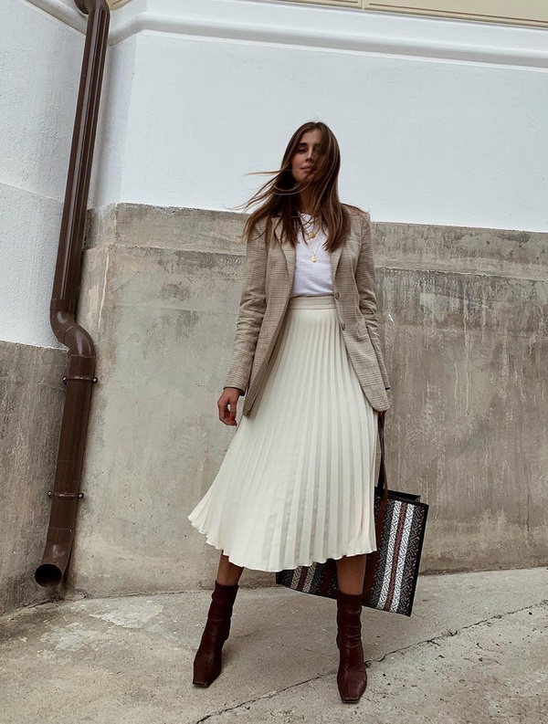 Սրանք շատ լավ, ոճային տեսք ունեն և լրացնում են աշնանային զգեստապահարանը: Այսպիսի կիսաշրջազգեստին լավ համապատասխանում է կարապատ վերնահագուստը, բայց այն կարող եք կրել ցանկացած այլ հագուստի հետ՝ սահմանափակումներ չկան: