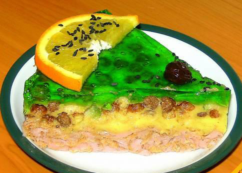 Հետո հանում եք և զգուշությամբ առանձնացնում պոլիէթիլենից և սկսում ձևավորման աշխատանքները: Ձևավորեք կտրատած նարնջով և քունջութով: Ահա և վերջ, հիասքանչ ամառային զգացողությունը ապահովված է: