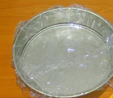 Վերցնում եք հարմար աման, որով կարող եք ձև տալ, մեջը փռում սննդային պոլիէթիլեն: