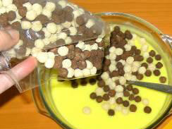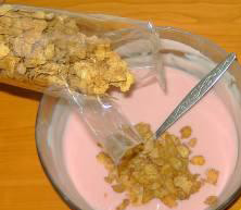 Մորու գույն ունեցող յոգուրտի մեջ լցնում եք եգիպտացորենի ձողիկները և խառնում, հետո ստացված զանգվածը լցնում եք այն ամանի մեջ, որում արդեն սկսում եք ստանալ տորթը: