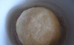 Մոտ 26 սմ պարագծով կլորավուն ֆորմային կարագ քսեք: Խմորը կարող եք գրտնակել, բայց ավելի հեշտ կլինի այն ձեռքերով բացեք հենց թխելու համար նախատեսված ֆորմայի մեջ: Պատառաքաղով ծակծկեք և դրեք տաք ջեռոցի մեջ: Թողեք 200˚C տաքացված ջեռոցում 25 րոպե: Այնուհետև հանեք ջեռոցից և թողեք սառչի: