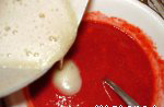 Ժելատինը լցրեք կաթսայի կամ թասի մեջ: Վրան լցրեք շատ տաք ջուր այնքան, որ ծածկի ժելատինը: Լավ խառնեք: Ավելացրեք կես կիտրոնի հյութ և խառնեք: Թողեք՝ մի փոքր սառչի և ավելացրեք ելակի խյուսին: